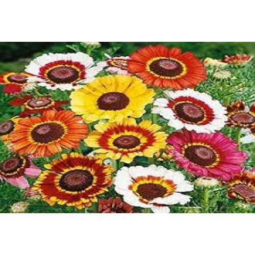 Attractive single flowers with white, yellow, red and brown rings around the flowers. Excellent cut flower. Ht 30-50cms. (100 seeds)