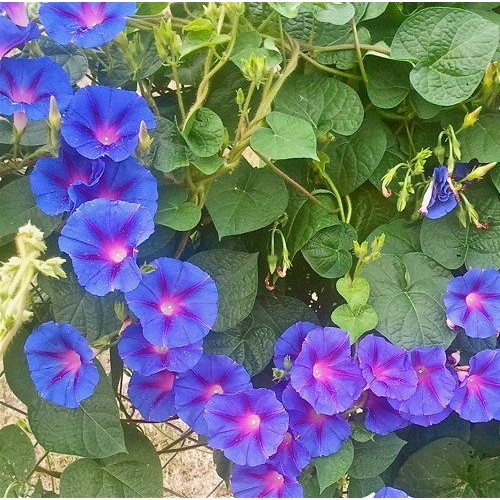 Morning Glory. Vigorous climber for sheltered spot with purple/blue flowers. Height 2-3m.